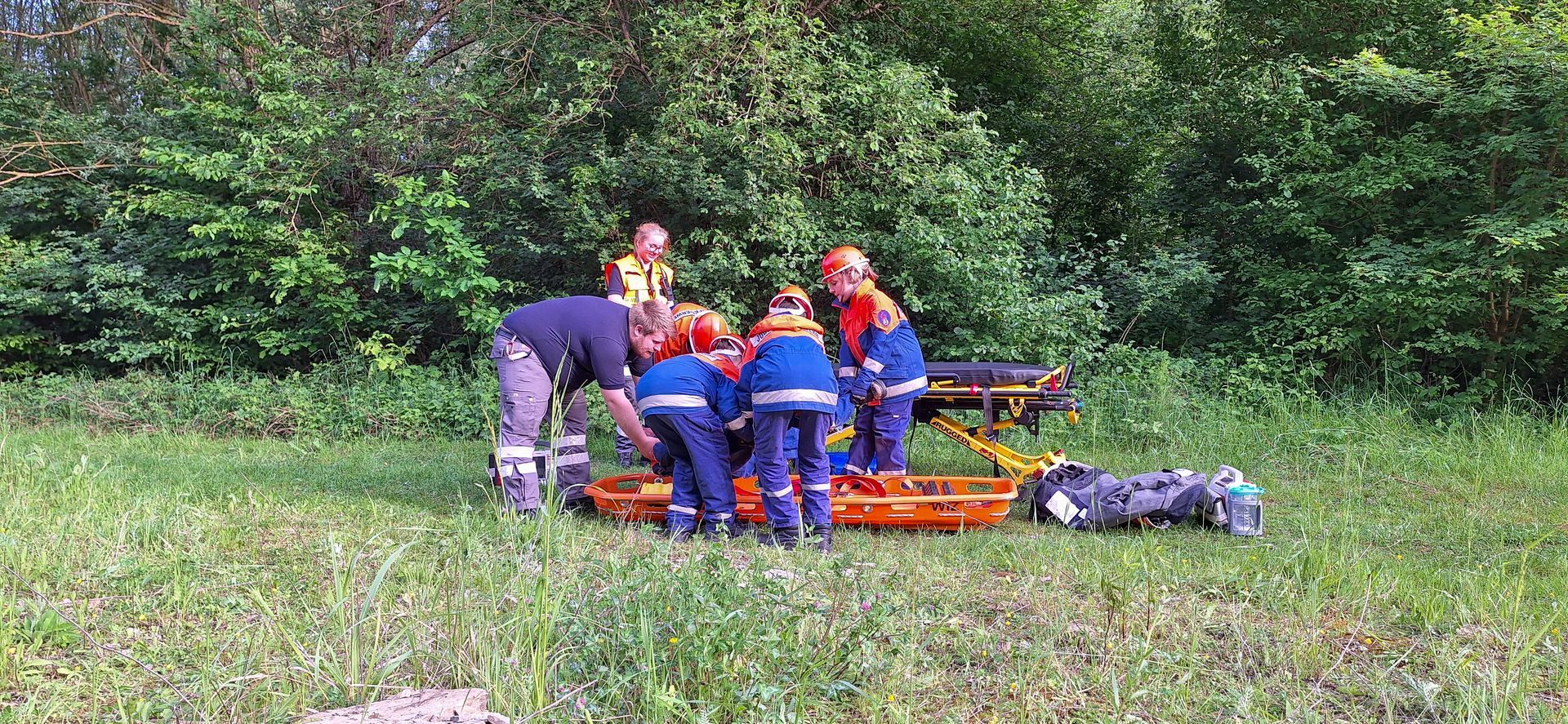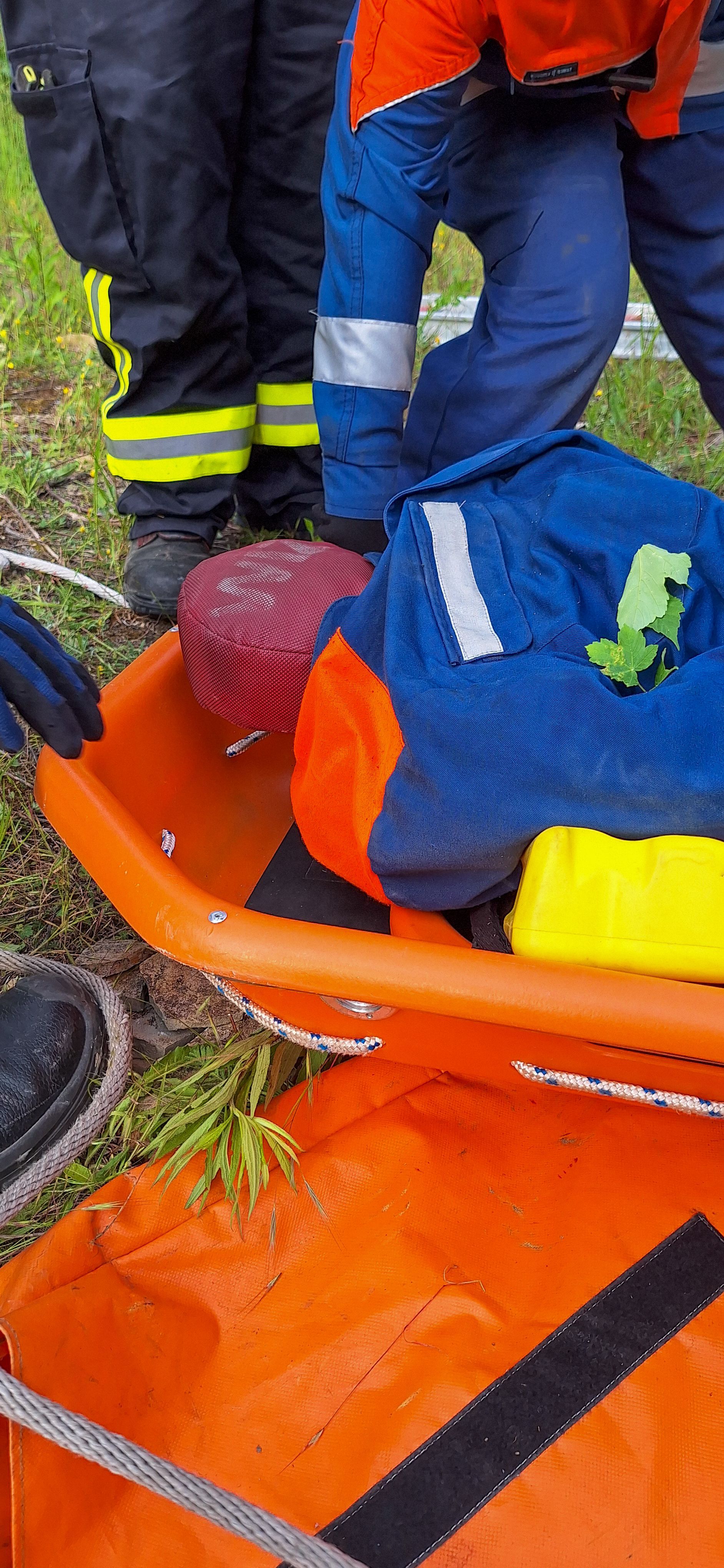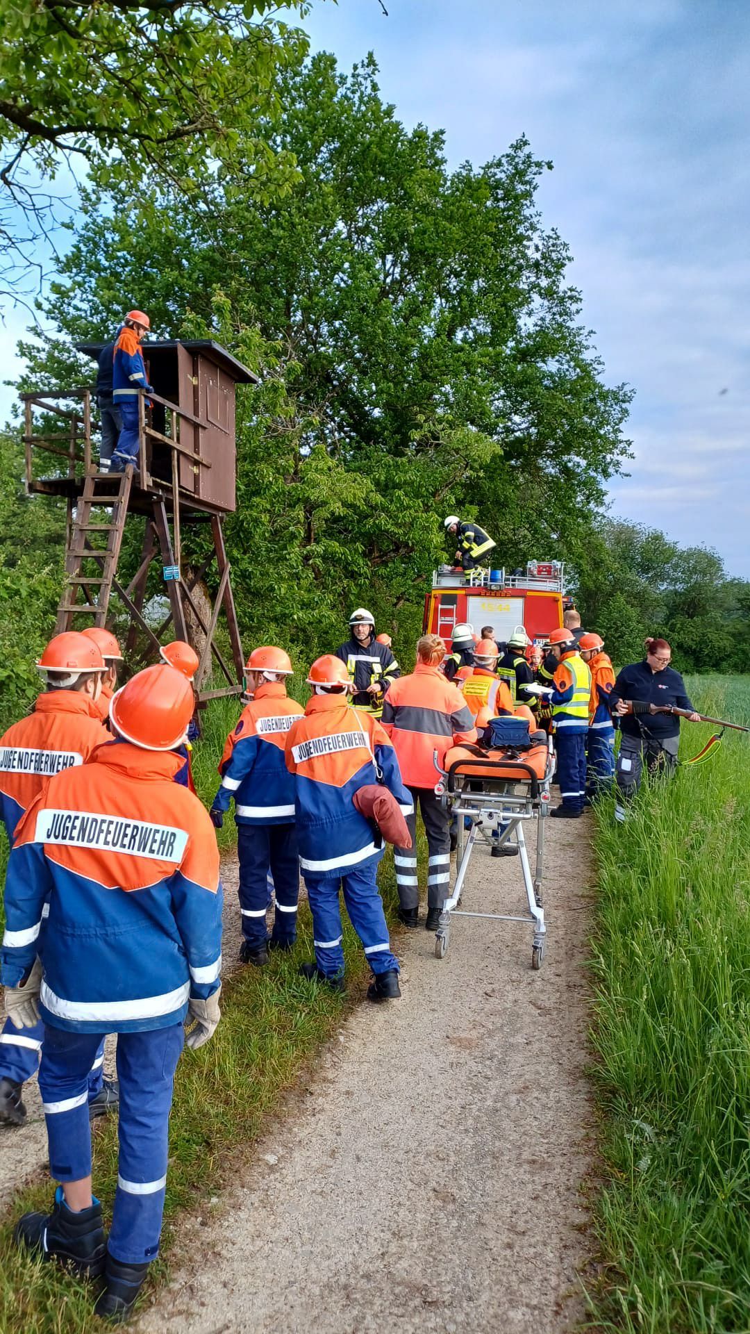 6:00 Uhr. Alarmeingang. Hilfeleistung. Menschenrettung von einem Hochsitz. Es rückte aus, alles. Vorgefundene Lage: Bei eintreffen war ein Jäger auf dem Hochsitz und klagte über Stechende Schmerzen im Brustbereich. Der Rettungsdienst sowie Mitglieder der Jugendfeuerwehr gingen auf den Hochsitz zur erkrankten Person. Wie es bei den Jägern ist, wurde auch eine Langwaffe gefunden, die sichergestellt wurde, so dass keine Gefahr mehr von diesem Gewehr ausging. (Das übernahmen erwachsene Personen!!!) Zur Lagebeurteilung versammelte der Einsatzleiter seine Gruppenführer und man besprach, wie die Person gerettet werden sollte, zumal eine Rettung über die angebaute Leiter für den „Patienten“ keine Option war. Letztendlich entschied man sich mit Hilfe einer Steckleiter einen Hebelbaum zu errichten, der dann zur Rettung eingesetzt wurde.