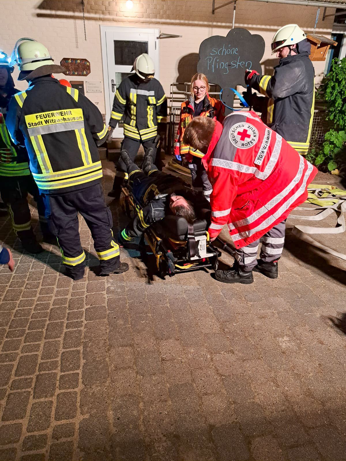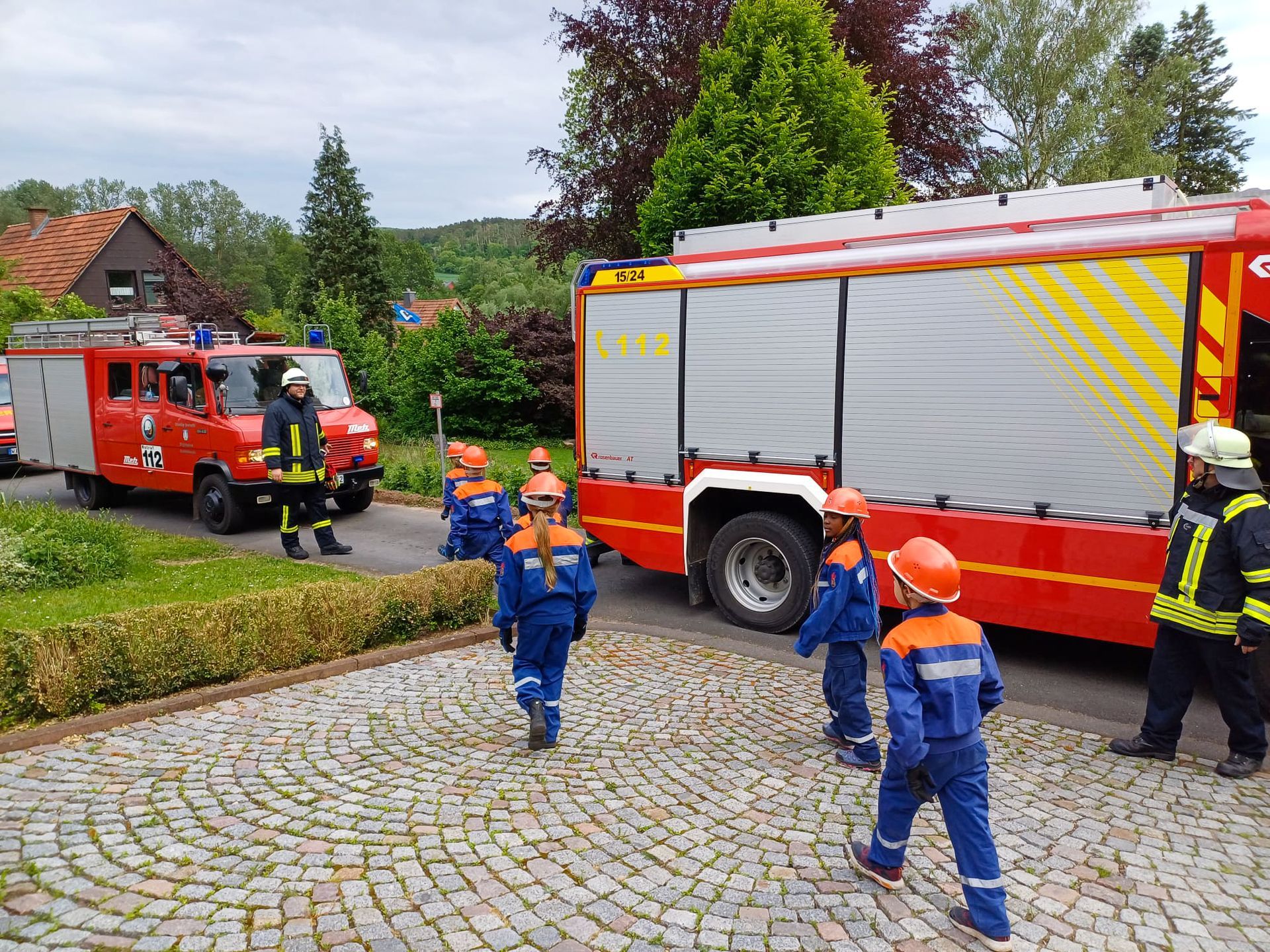 Wir Kinder- und Jugendwarte sagen ein recht herzliches Dankeschön an alle Akteure, die unseren 24-Stunden-Dienst mit voller Eifer mit Leben gefüllt haben. Ob das die Ortschaften mit den einzelnen Übungsszenarien waren, ob das der Hintergrunddienst war, der uns voll umfänglich verköstigt hat und im Vorfeld in Planung gegangen ist, die Eltern, die Salate Obst Desserts… zur Verfügung gestellt haben, aber auch unsere eigenen Einsatzkräfte, die die ganze Zeit der Jugendfeuerwehr zur Verfügung standen, sowie die Einsatzkräfte, die an den einzelnen Übungen dabei waren. Dem DRK, Ortsverein Witzenhausen, die mit einem Rettungswagen und einem Krankenwagen ebenfalls rund um die Uhr bei uns auf der Wache waren.
