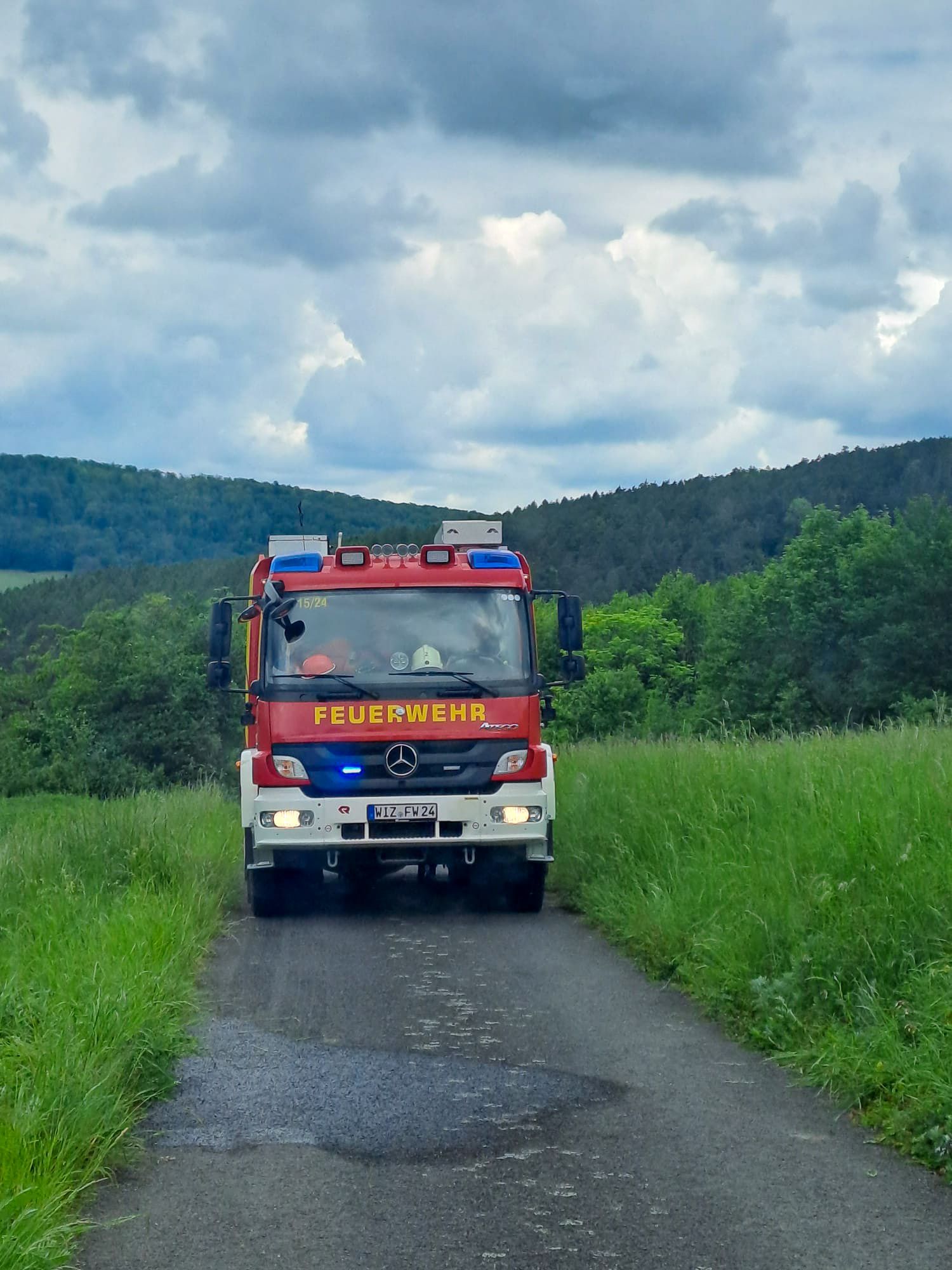 Nun wurde auch die Feuerwehr Witzenhausen in den Wald gerufen. Es mussten zwei weitere Wassersäcke aufgebaut werden und dementsprechend mit Tauchpumpen immer umgefüllt werden, so dass die Fahrzeuge an der Einsatzstelle ihr Löschwasser aus diesen Säcken erhielten. Außerdem mussten die ebenfalls eine Brandbekämpfung aufbauen und durchführen.